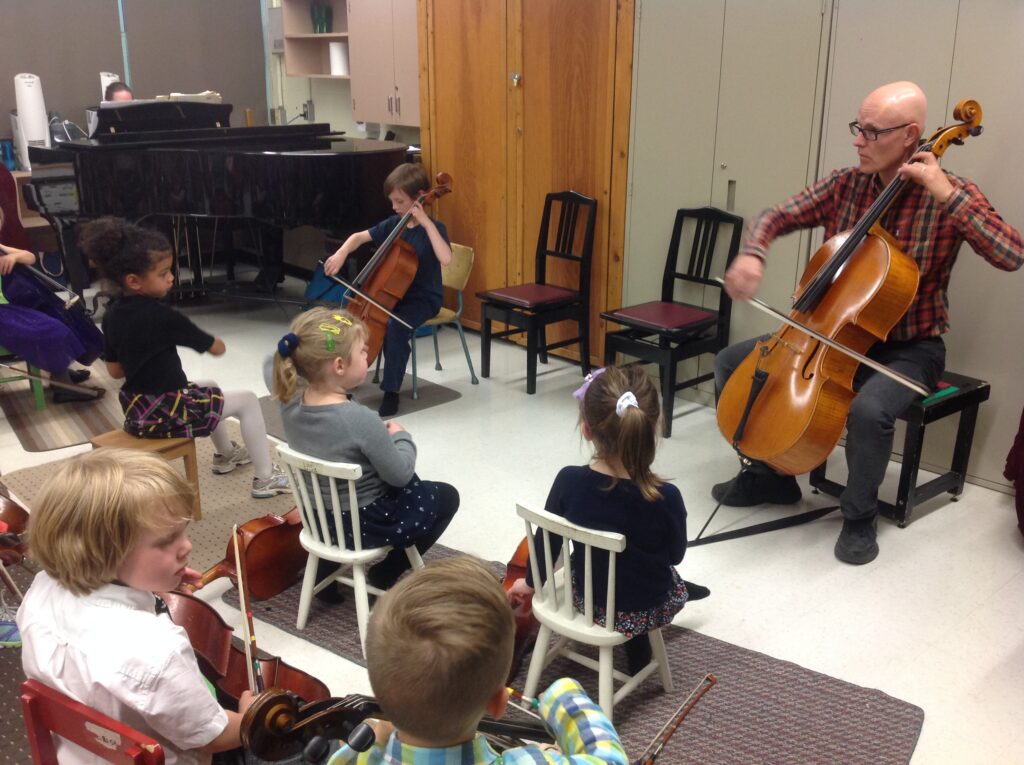 Mark has been playing cello for 56 years, and started when he was 11 years old in a Suzuki strings program in Calgary with Thomas Rolston. He began on piano, but once he discovered the sound of the cello, it took over. When he was 18, he went to Julliard and got his Bachelor of Music under the instruction of Harvey Shapiro. After his time there, he pursued an education at the University of Alberta with Claude Kenneson where he restarted his Suzuki journey. Mark has been teaching at the Society for Talent Education since 1980.